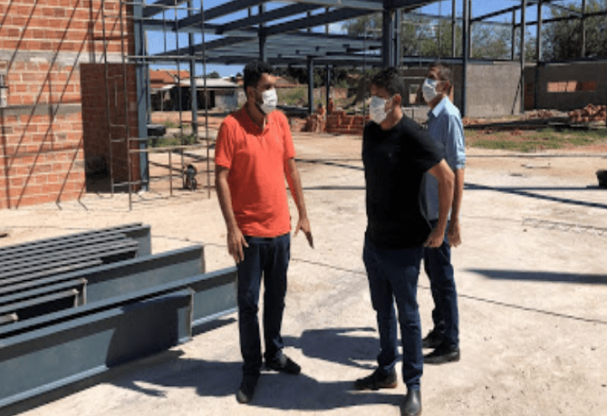 O secretário de Planejamento do município de Parnarama, Breno Silveira, esteve junto com Engenheiro Bruno Cardoso, em vistas das obras de construção da Escola Municipal