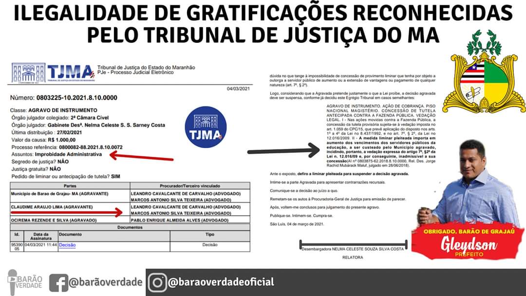 Improbabilidade administrativa do ex-prefeito de Barão de Grajaú Gleydson Resende que teria feito na calada da noite as véspera do término do seu mandata, a