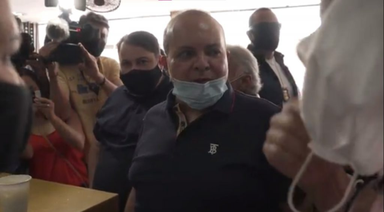 Presidente também criticou recomendações do ex-ministro da Saúde, Luiz Henrique Mandetta. Fotos: Marcos Corrêa/PR e Reprodução/Redes sociais. Em conversa com apoiadores na porta do Palácio
