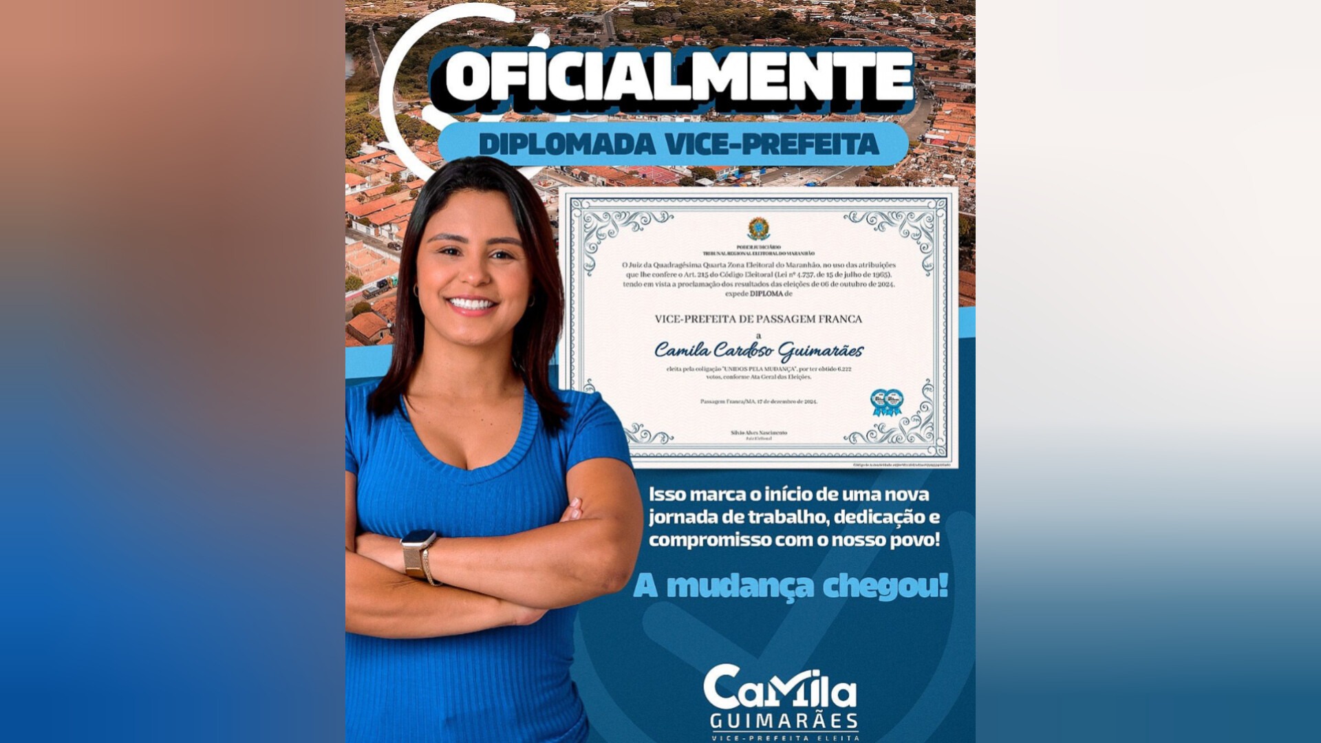 Em um momento marcante para sua trajetória política, Camila de Guimarães foi diplomada como vice-prefeita de Passagem Franca-MA, reafirmando seu compromisso com o desenvolvimento da
