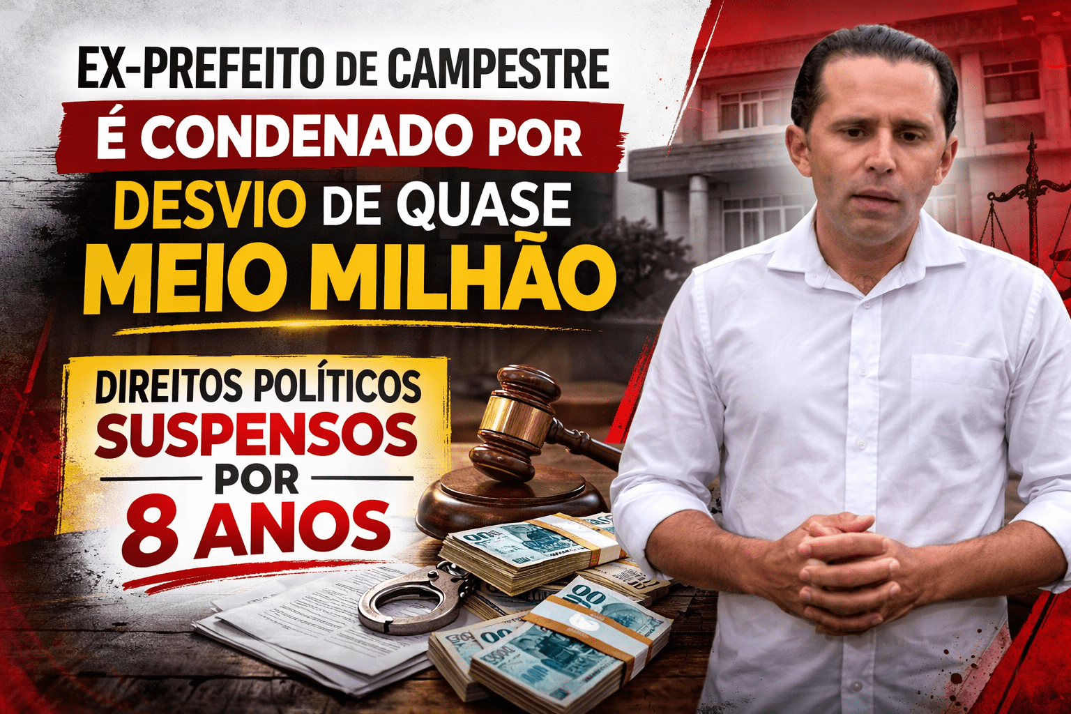 O ex-prefeito de Campestre do Maranhão, Valmir de Morais Lima, foi condenado pela Justiça por irregularidades relacionadas à demolição das antigas sedes da Prefeitura e da Câmara Municipal.