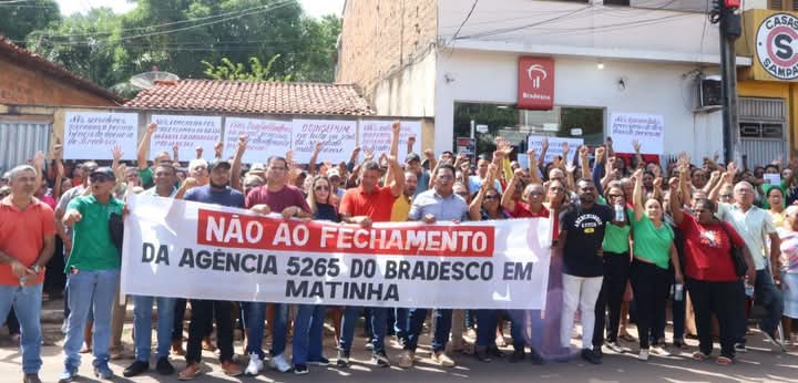 Em um ato de resistência e união, moradores de todas as regiões do município de Matinha se reuniram nesta quinta-feira (22), em frente à Agência do Bradesco, para protestar contra o encerramento das atividades da instituição no município.