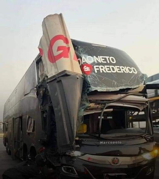Após o incidente, Frederico compartilhou uma foto do ônibus danificado, tranquilizando os fãs: “O pessoal da equipe já foi socorrido, galera, e se Deus quiser ficará tudo bem”.